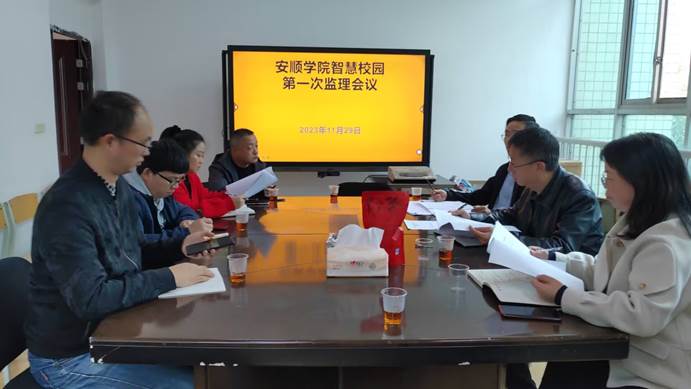 2023年11月29日下午,在学校电教楼2楼会议室召开安顺学院智慧校园建设项目第一次监理例会,计算机与网络管理中心、监理单位、施工单位相关人员参加了会议,会议由计算机与网络管理中心主任贺雷主持。贺雷在讲话中强调:一、各方规范管理,严格按合同办事,按规矩办事,对学校负责。施工单位要切实对项目负起责任,加强指导和监督,保证工程质量优良,安全无事故;监理单位受学校委托,要严格把控工程关键点,对工程质量、进度、安全、造价进行全面的监督控制,杜绝一切质量安全隐患;学校、施工单位及监理单位各负其责,做好工程对接和验收工作。二、学校项目负责人、监理单位和施工单位人员保持廉洁自律,防控项目廉政风险。最后,与会三方达成决议:严格按照合同各尽其责,共同完成项目的建设。