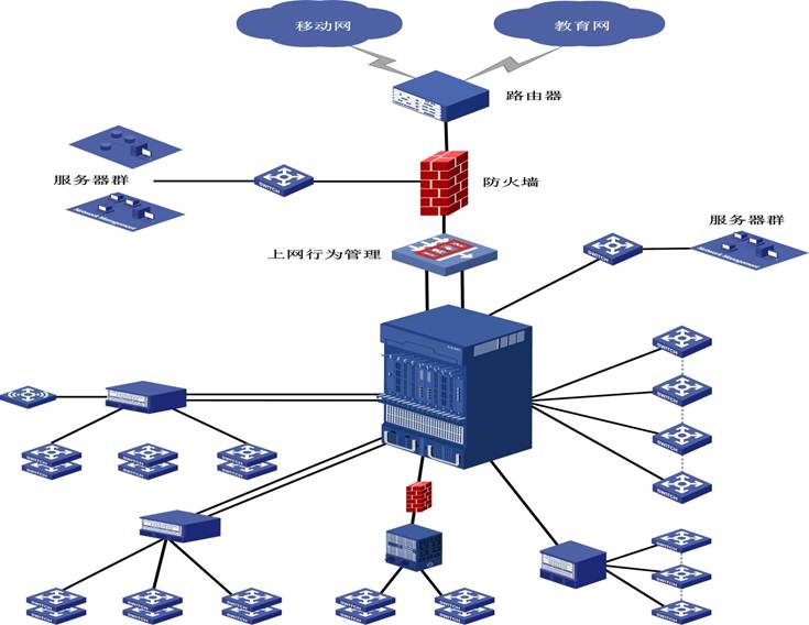 安顺学院信息化校园的基础设施由校园计算机网络和校园一卡通专用网络组成。我校的校园计算机网络是经过多次拓扑结构的优化和部分设备的更新及扩容而形成的,已覆盖教学区、行政区在内的大部分建筑楼宇。我校校园网与CERNET、移动网互联,校园网核心机房到教学区各大楼之间实现了万兆、千兆光纤互连,接入信息点数约3800个,服务器20余台(含托管服务器);各类网站(含二级网站)及应用系统60余个。目前校园网络实现了信息资源网络化、辅助教学网络化、图书资源数字化、行政办公自动化等校园信息化功能。