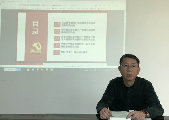 为引导广大教师深入学习“四史”,保证青年教师把握前行方向、增强担当底气、坚守初心使命,2021年6月4日下午,在电教楼二楼会议室,计算机与网络管理中心主任贺雷向部门全体教职工做了“四史”宣讲。